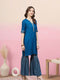 Fashion Plus Store Women's Cotton Slub Calf Length 3/4th Sleeve Straight Kurta with Kalamkari Printed Palazzo